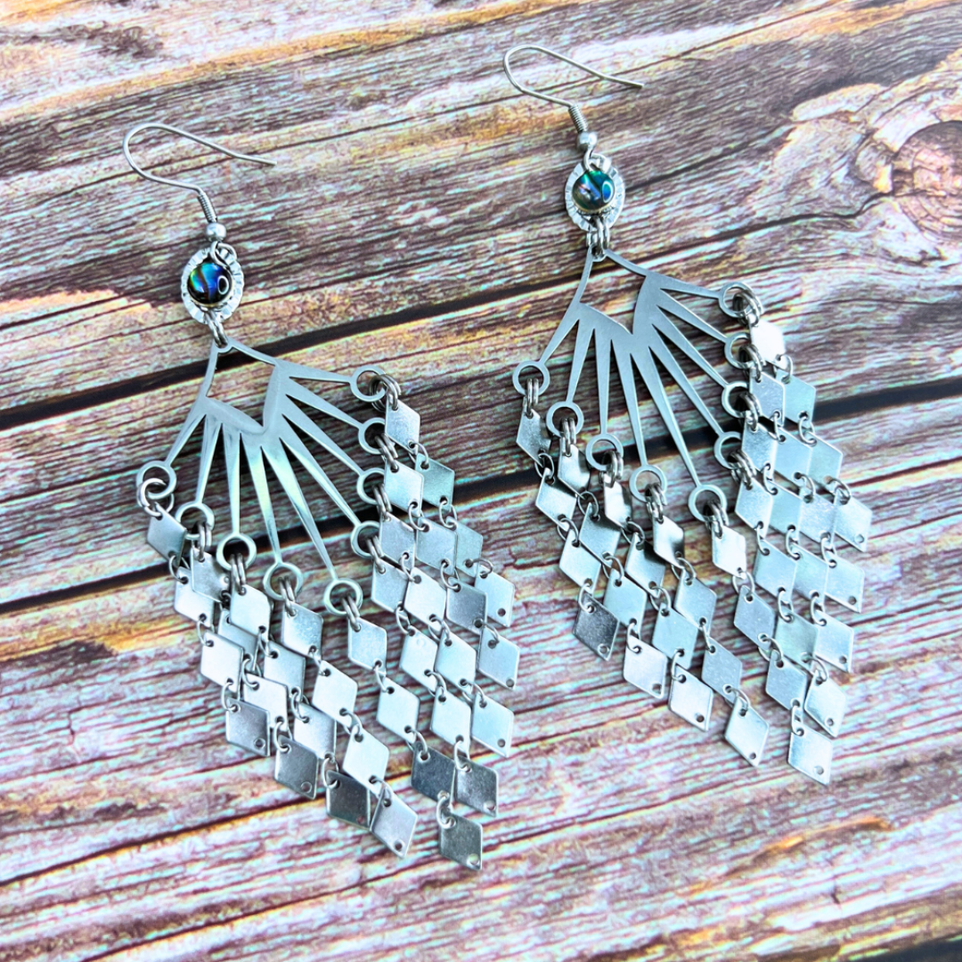 Steel Abalone Shell Fringe Earrings | Yayah Designs