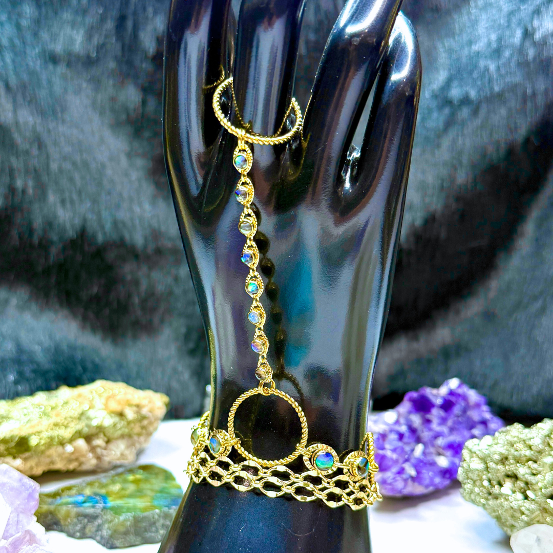 Abalone Shell Gold Moon Hand Chain Duo