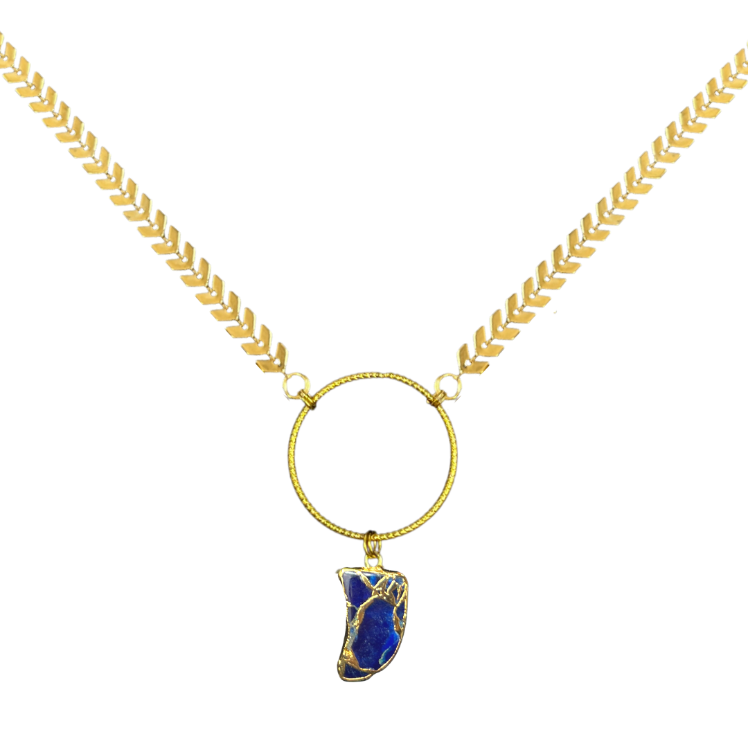 Blue Druzy Crescent Gold Necklace