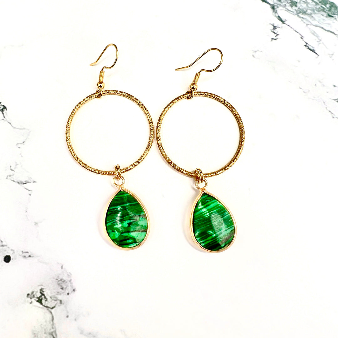 Small Malachite Gold Hoop Earrings