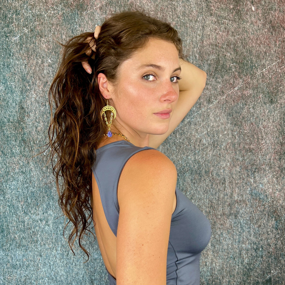 Teal Crescent Moon Rana Earrings