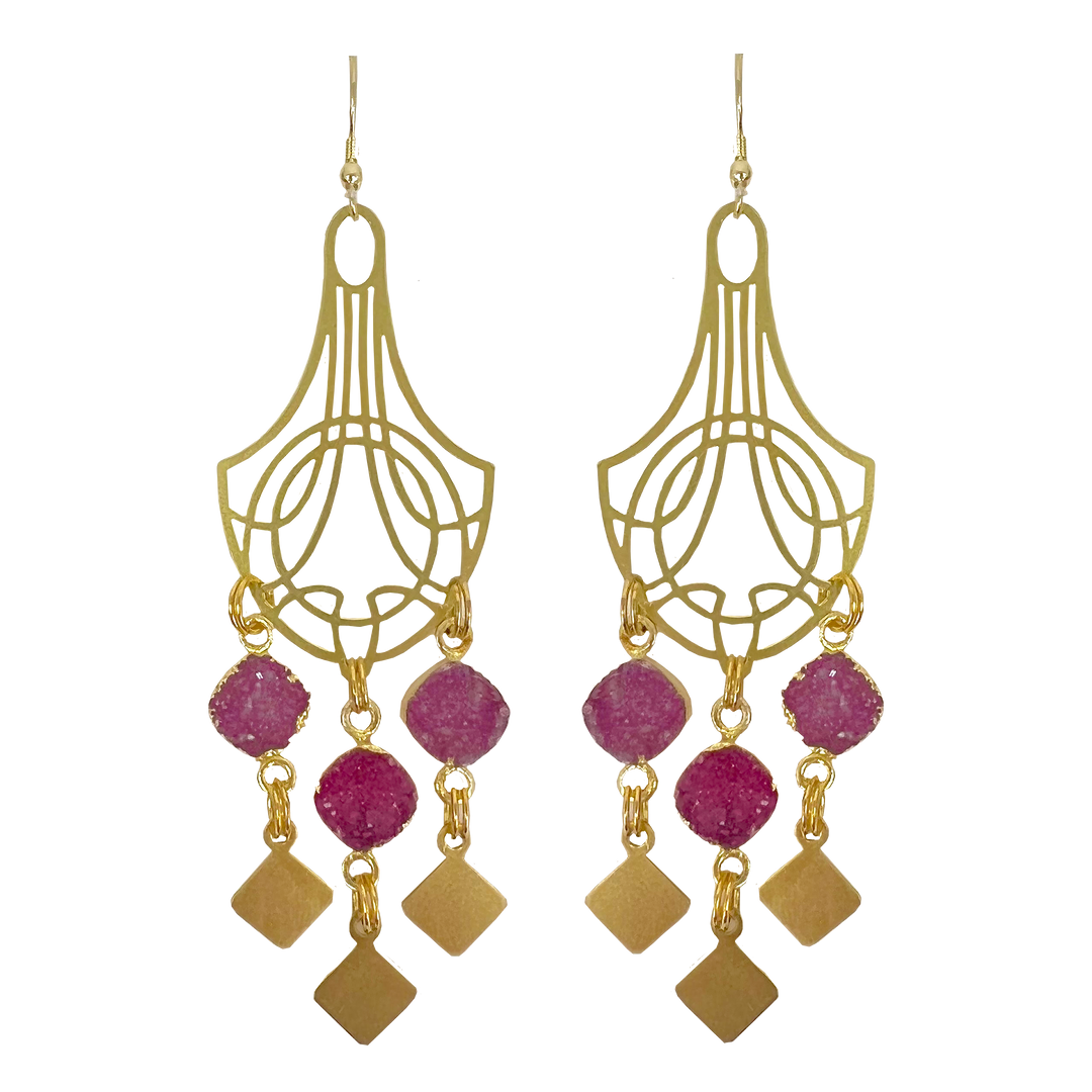Tassel Crescent Druzy Gold Earrings