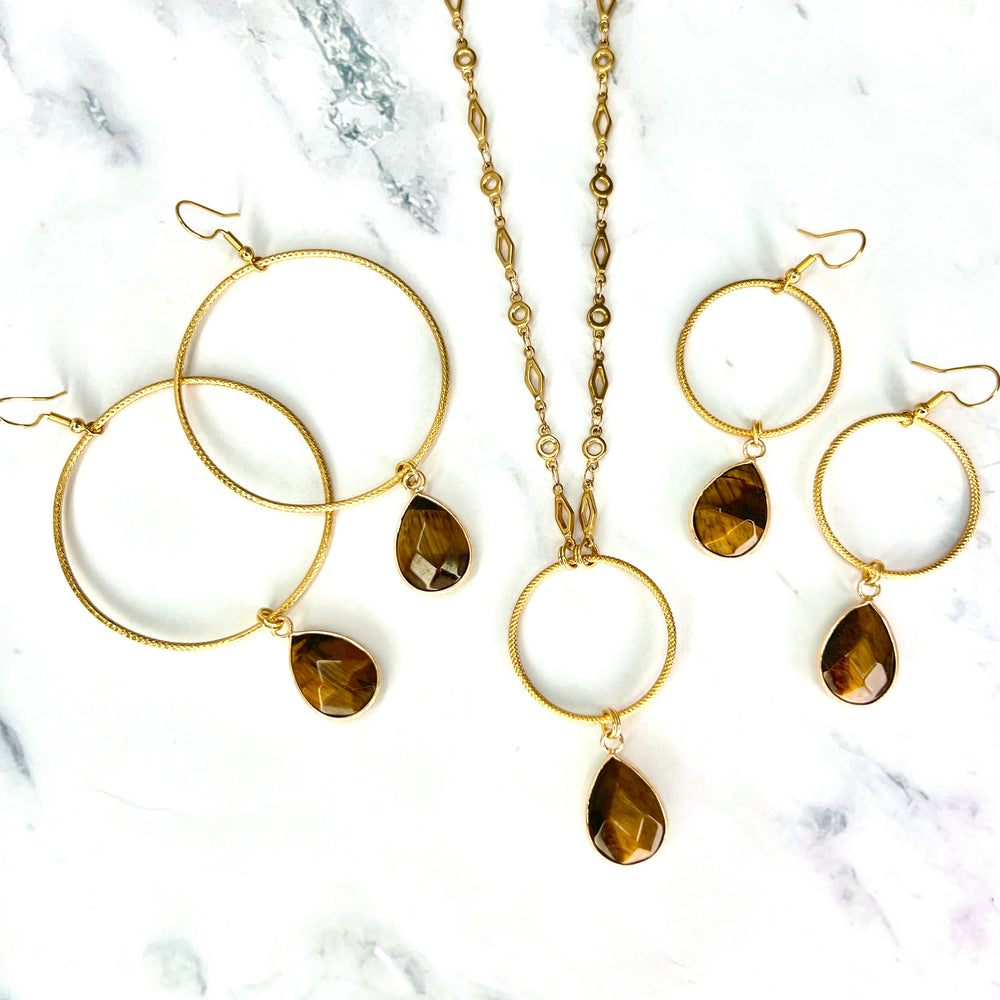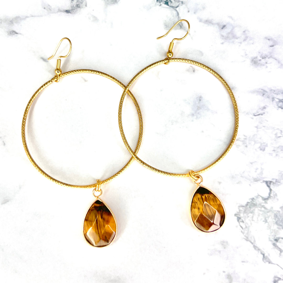 Tigers Eye Large Gold Hoop Earrings
