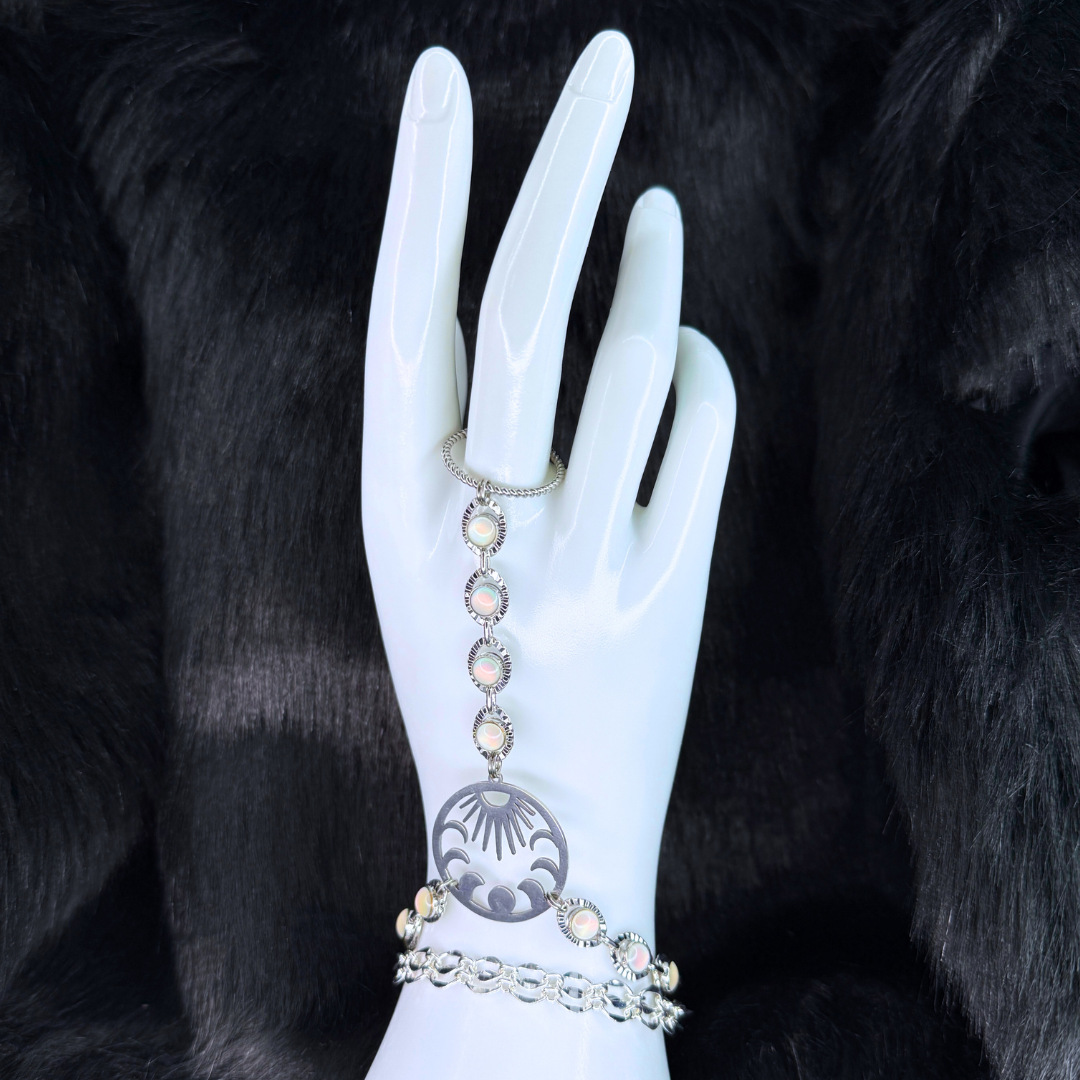 White Silver Sun & Moon Hand Chain Duo