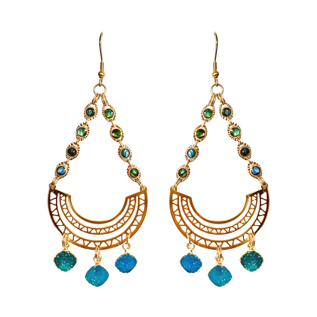 Triple Blue Druzy Abalone Earrings