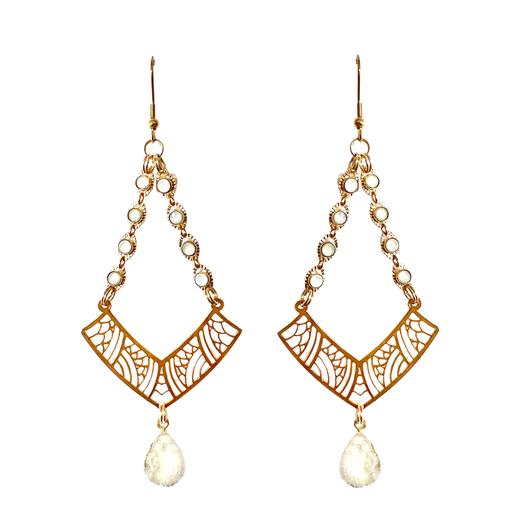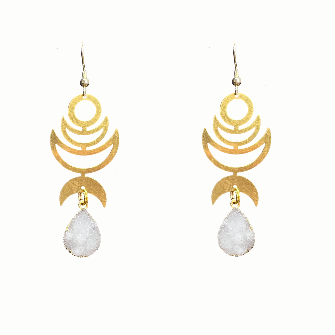 White Druzy Gold Geometric Dangle Earrings