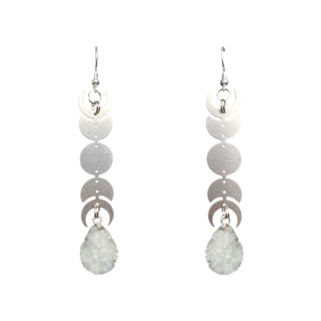 White Steel Moon Miram Earrings