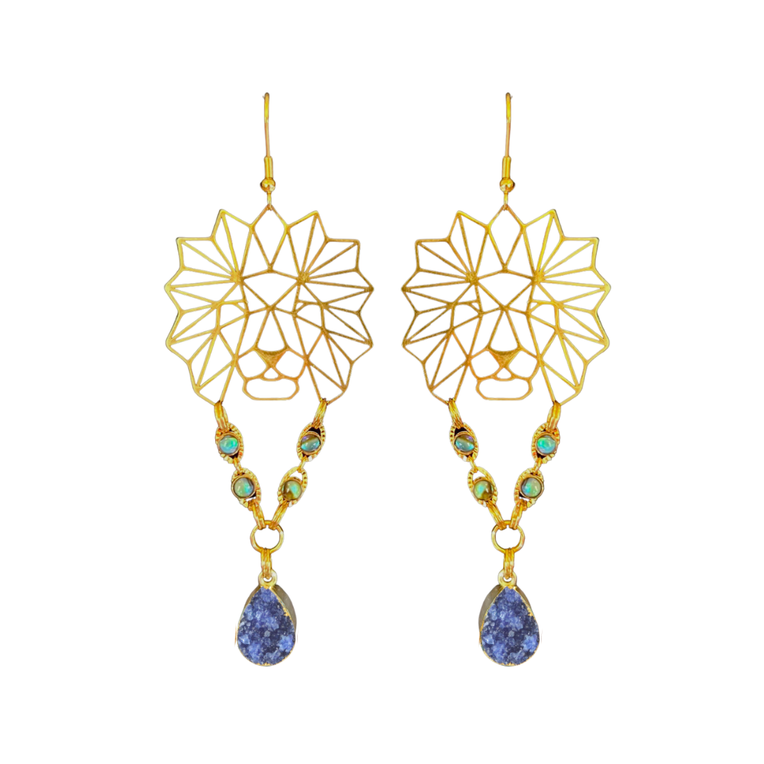Fierce Lion Zircon Druzy Earrings