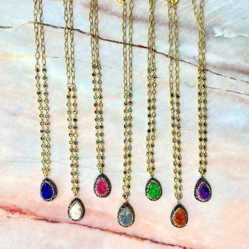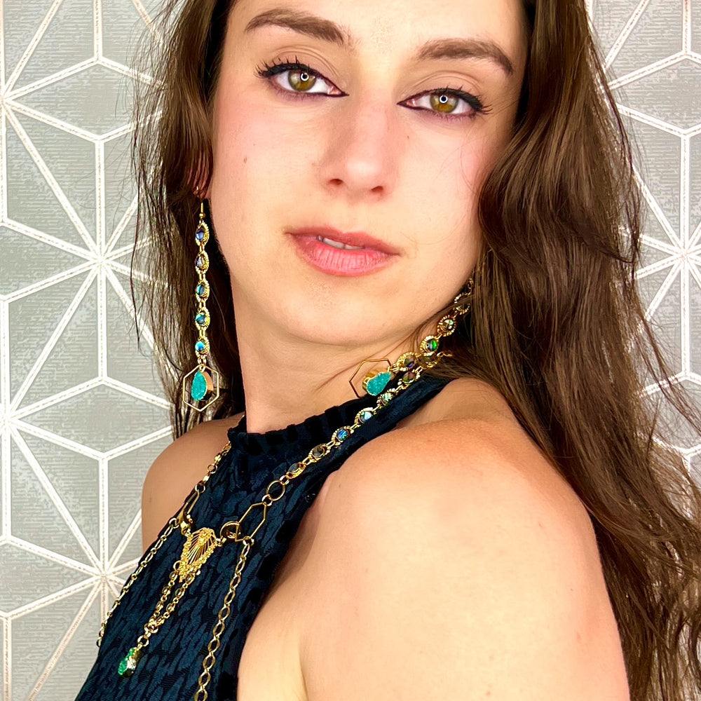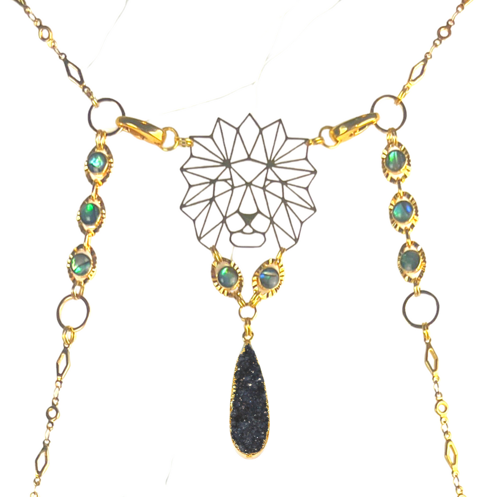 Gold Triple Chain Mother of Pearl Hand Neck Duo