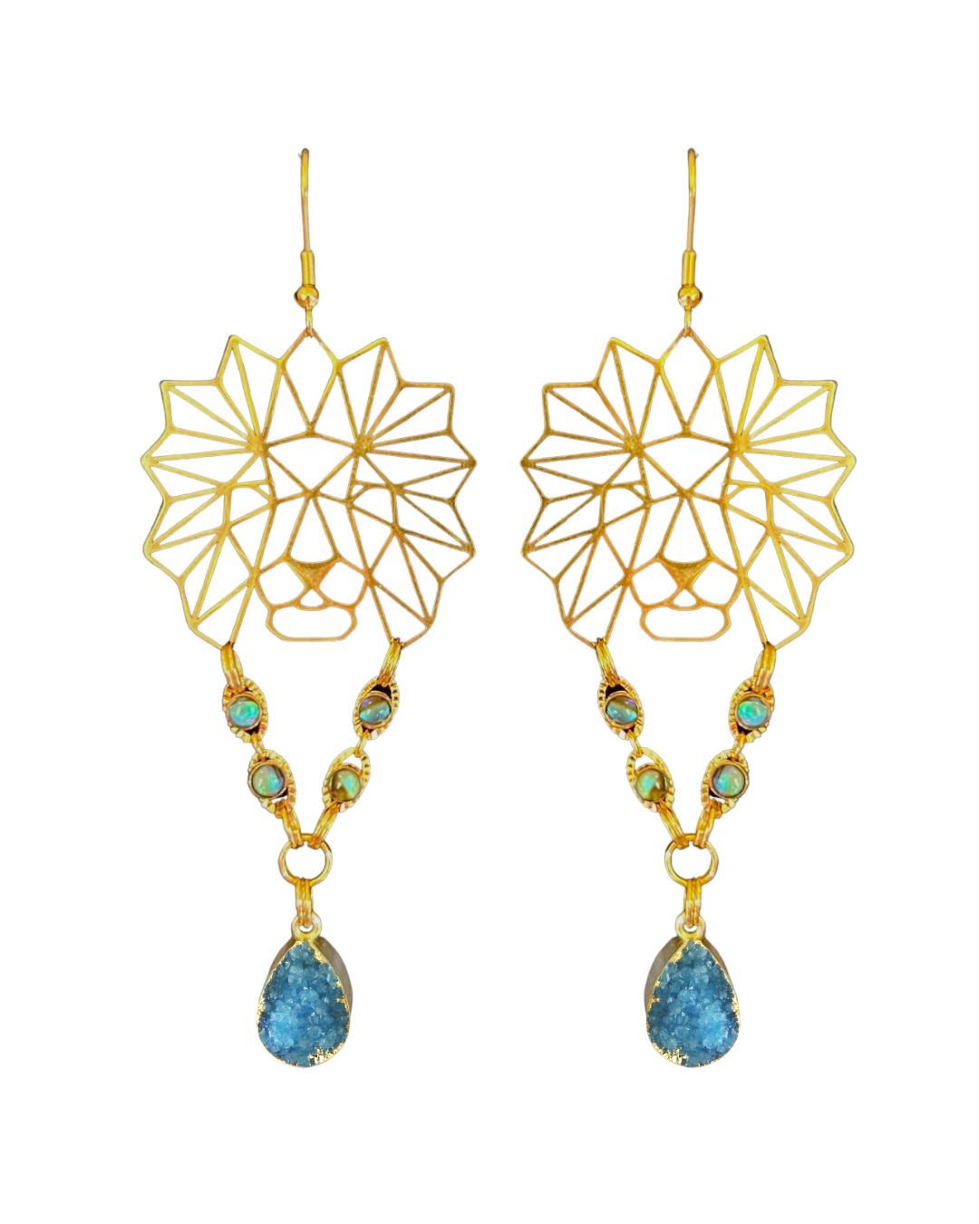 Lion Shell & Blue Druzy Earrings