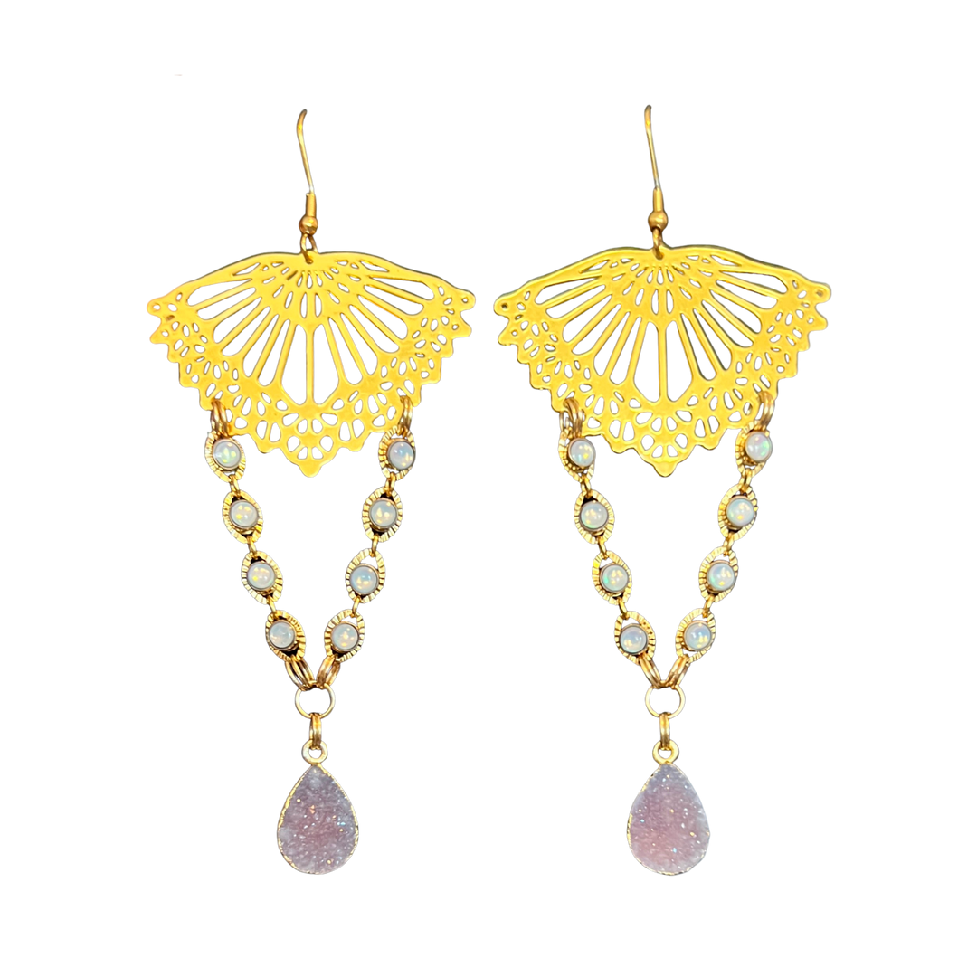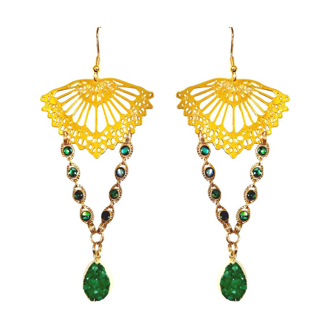 Jungle Druzy Quartz Drop Gold Earrings