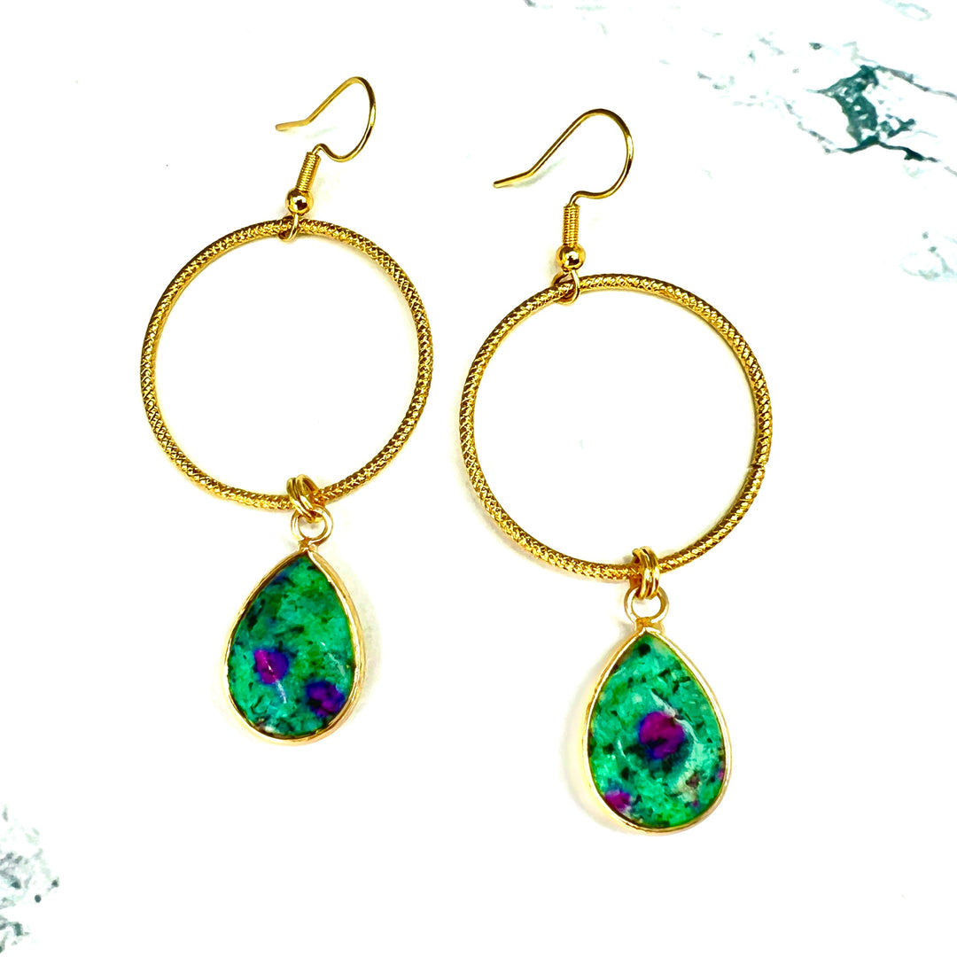 Ruby in Zoisite Large Gold Hoop Earrings