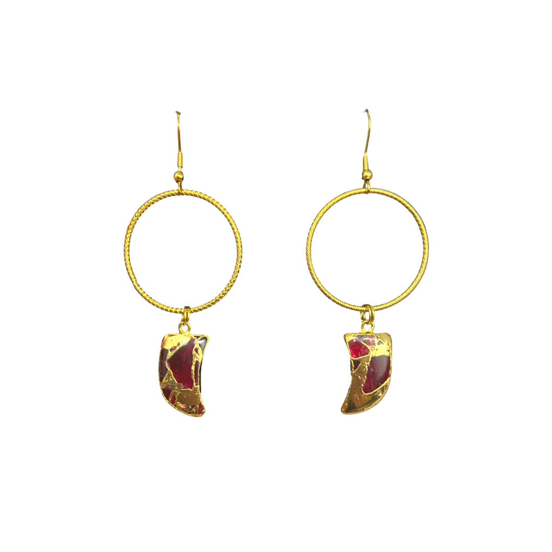Red Crescent Moon Rana Earrings